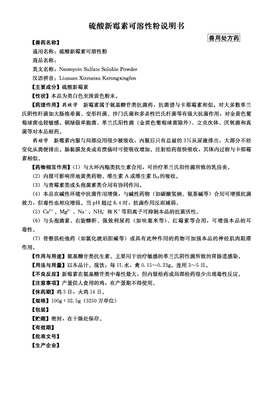 用于治療豬、雞革蘭氏陽性菌、陰性菌引起的大腸埃希菌病、沙門氏菌病、巴氏桿菌病以及支原體引起的呼吸道疾病。