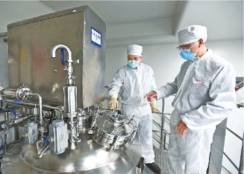 人福普克藥業(武漢)有限公司技術人員巡查溶膠罐設備